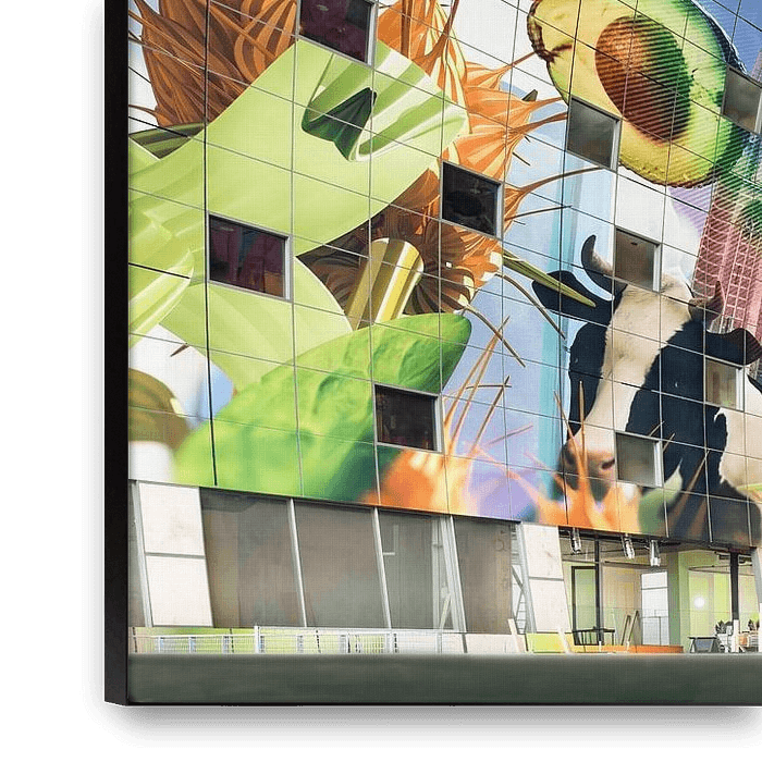 Achetez cette œuvre d'art abstraite Pays-Bas, Rotterdam. Intérieur du Markthal. par Frans Lemmens sur toile, aluminium, ArtFrame ou photographie (encadrée), impression d'art en haute qualité et tout format.