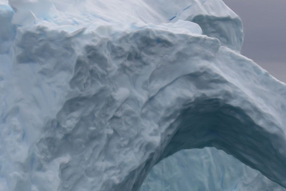 Paysage Antarctique : gouache numérique peignant un iceberg avec un pont de glace