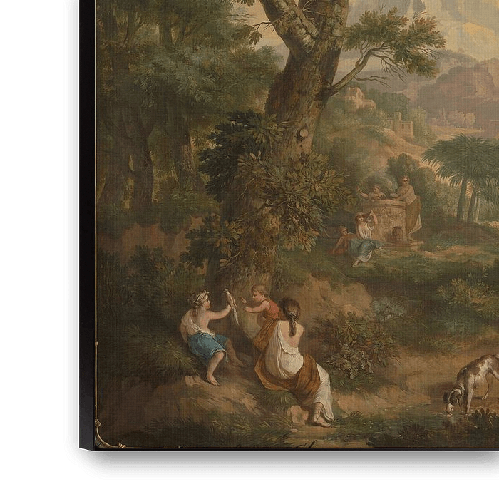 Achetez Paysage arcadien avec à l'avant gauche des enfants avec un oiseau et un chien, Jurriaan Andriessen en tant que reproduction sur toile, aluminium, ArtFrame ou photographie (encadrée), impression d'art en haute qualité et tout format