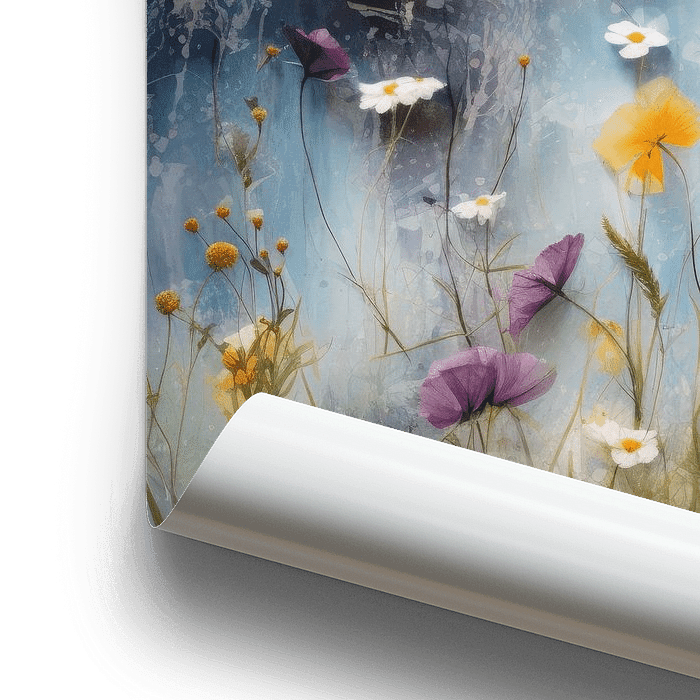 Paysage avec des fleurs aux couleurs pastel. Choisissez la taille et le matériau sur lequel vous imprimez cette œuvre et faites-la vôtre.