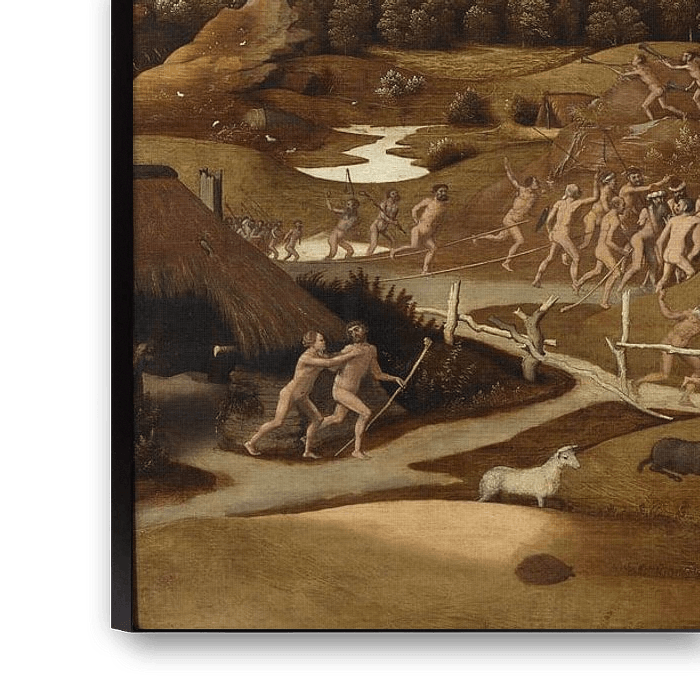 Paysage montrant un épisode de la conquête de l'Amérique, Jan Jansz Mostaert Dans l'empire des Habsbourg de l'empereur Charles V, "le soleil ne se couchait jamais". Elle comprenait de grandes parties de l'Europe, notamment l'Espagne et les Pays-Bas, ainsi que des régions d'Amérique centrale et des Caraïbes. Il s'agit de la première peinture montrant des soldats espagnols affrontant des indigènes. Des éléments exotiques ont donné au paysage d'apparence européenne un aspect exotique : un singe, un cochon voleur d'arbres et des perroquets.