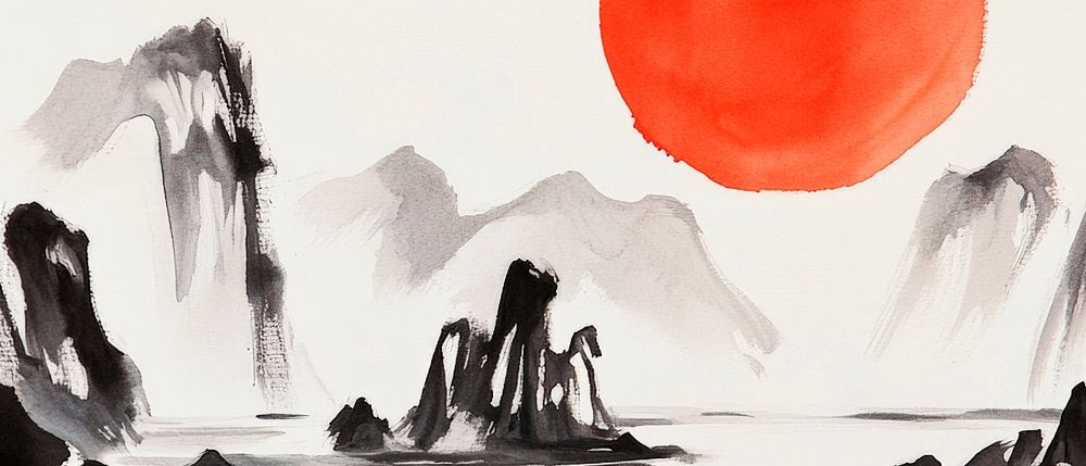 Un majestueux coucher de soleil déploie sa splendeur rouge vif sur des montagnes douces et mystérieuses, tandis qu'un pêcheur solitaire dérive tranquillement sur l'eau. La combinaison harmonieuse du noir et du rouge confère à la pièce un calme méditatif. Idéale pour le salon, cette œuvre d'art invite à la rêverie et à la détente.