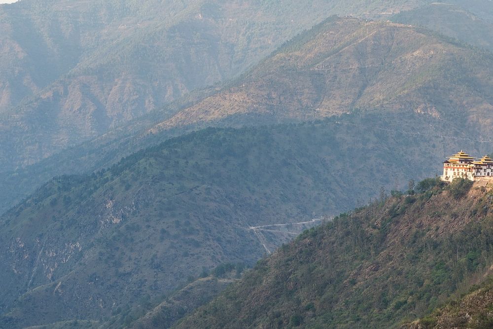 A propos de "Paysage de montagne au Bhoutan avec vue sur le monastère Trashigang Dzong"