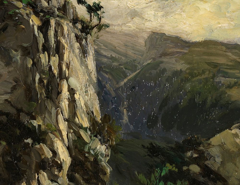 Paysage de montagne de Carlos de Haes-Stenen, paysage antique de la collection des anciens maîtres