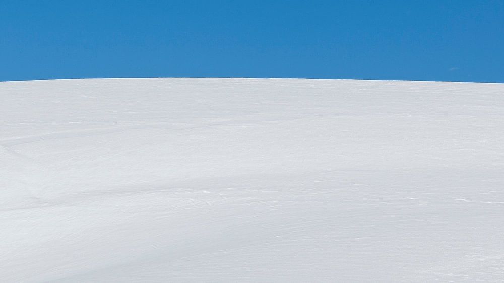 Paysage horizontal enneigé en hiver avec des randonneurs en Antarctique. Sur cette photo, on peut vraiment voir à quel point ce paysage est impressionnant et vaste. Les randonneurs sont des points de repère dans le paysage blanc.