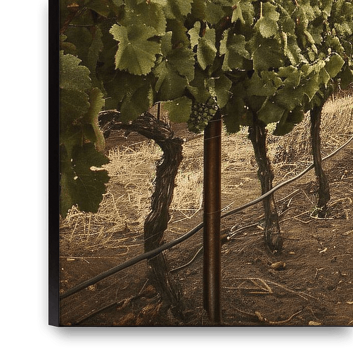 Découvrez le charme rustique d'un vignoble classique, capturé dans des tons sépia qui évoquent un sentiment de nostalgie et de beauté intemporelle. Parfaite pour les intérieurs modernes et traditionnels, cette image donne à voir des rangées de vignes en train de mûrir, stratégiquement plantées sur une terre fertile. Les herbes sèches et…