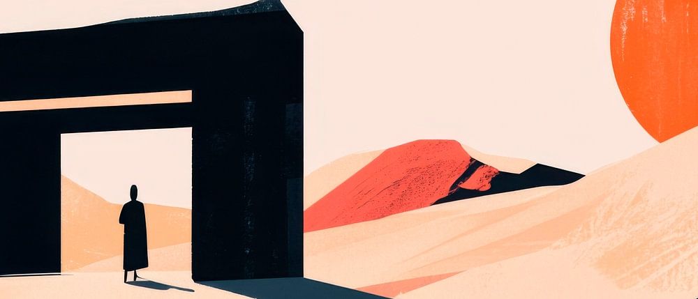 Une interaction harmonieuse entre les tons chauds de la terre et un coucher de soleil éclatant caractérise cette représentation fascinante. Le cadre noir marquant forme un contraste impressionnant avec la douceur du paysage, tandis que le personnage silhouetté promet curiosité et découverte. Parfaitement adapté au salon, il invite à inspirer des pensées et des conversations plus profondes.