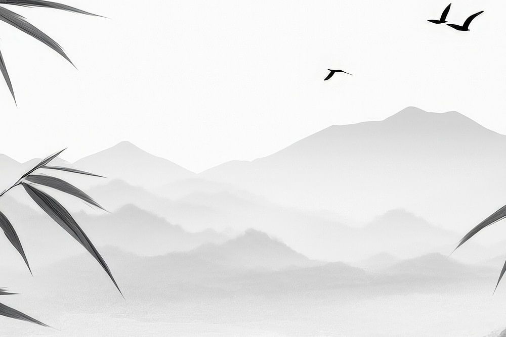 Un paysage harmonieux de lignes de montagnes douces et d'oiseaux en suspension confère à la pièce une atmosphère relaxante. Les délicats cadres en bambou créent un lien avec la nature et invitent au calme. Idéal pour la chambre à coucher ou le salon, pour créer une ambiance apaisante et méditative et y intégrer une touche d'élégance orientale.