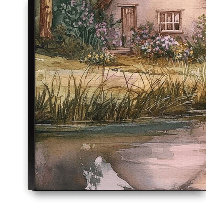 Un village pittoresque au bord d'une eau calme, entouré de douces collines et d'arbres majestueux, invite à la rêverie. Les couleurs chaudes du coucher de soleil se reflètent dans la clarté du lac, tandis que les charmantes maisons créent un cadre idyllique et accueillant. Cette œuvre d'art est parfaite pour le salon afin de créer une…