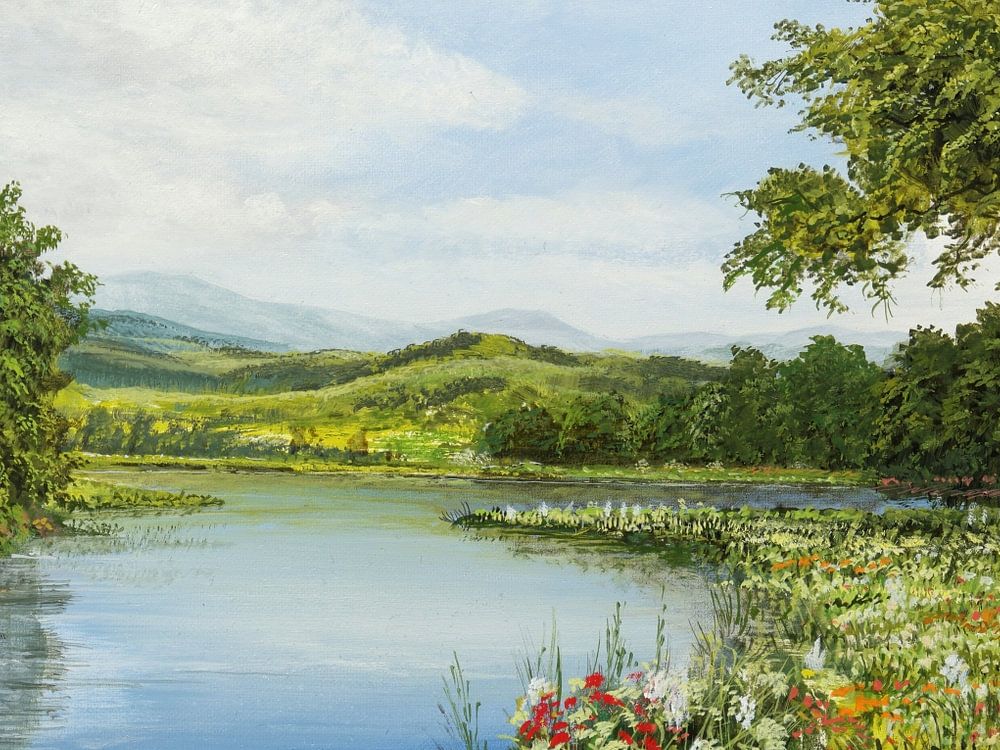 En comparaison avec les deux images suivantes, on remarque dans cette composition le point commun suivant : une rivière centrale au premier plan s'écoule vers l'arrière avec un large virage à gauche.