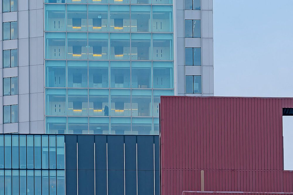 Une image passionnante, pleine de couleurs, de textures et de profondeur dans la composition de ces bâtiments de Rotterdam.