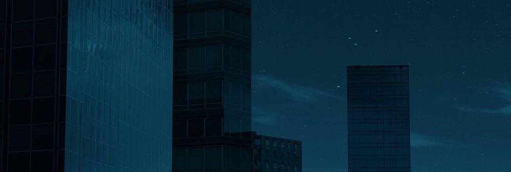 A propos de "Paysage urbain avec des gratte-ciel et de grands immeubles la nuit"
