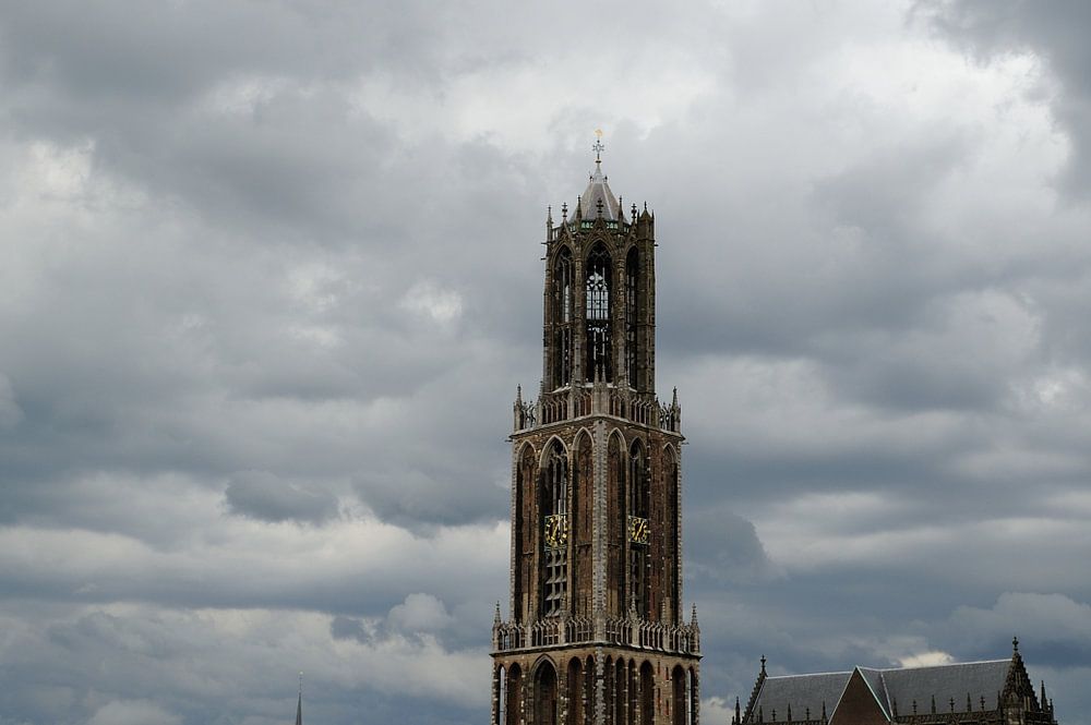 Vue de la ville d'Utrecht avec un orage. Au milieu, la tour et l'église de Dom. La photo a été prise le 7 avril 2014.