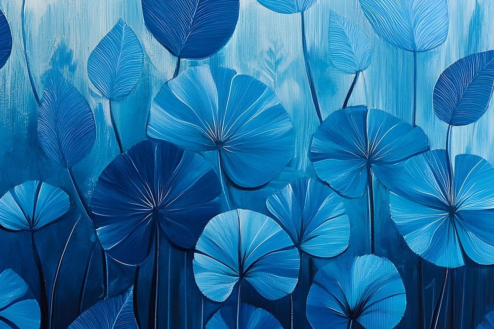 Créez une atmosphère sereine avec ce tableau de la nature en bleu.