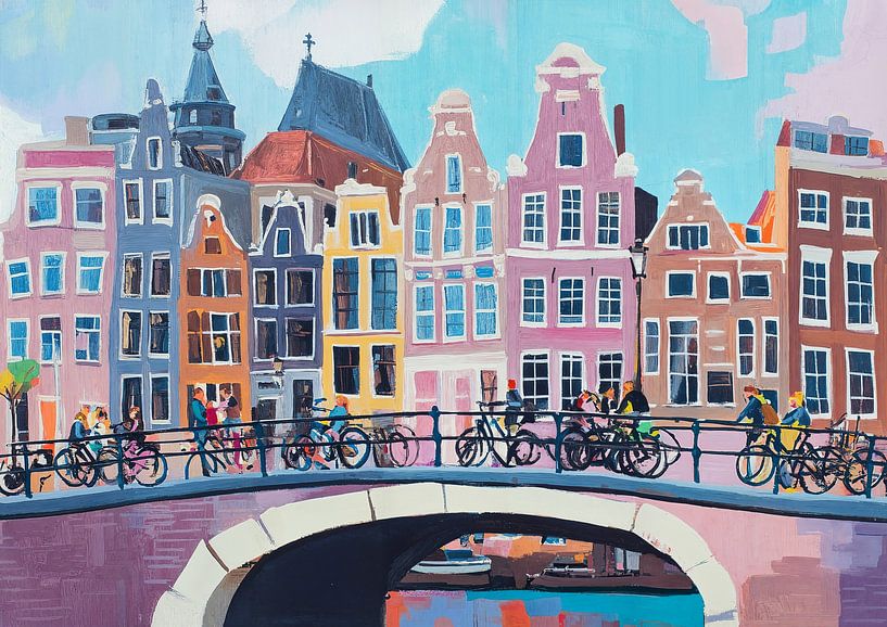 Peinture Amsterdam - L'atmosphère d'Amsterdam, une ville pleine d'histoires pour les amoureux de la ville. Amsterdam, une ville qui ne cesse de surprendre.
