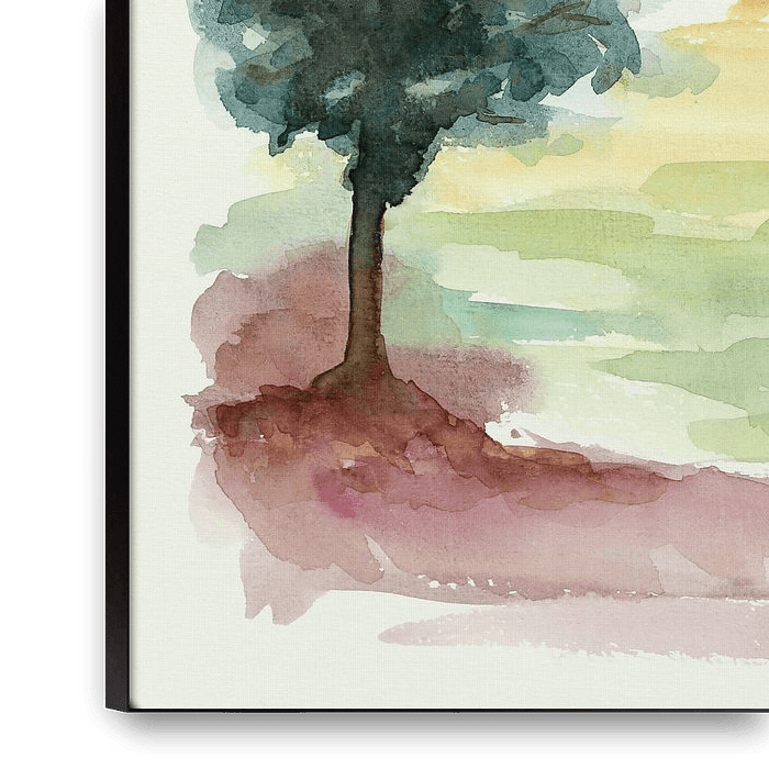 Achetez cette œuvre d'art de paysage Peinture abstraite arbre bruyère (aquarelle gaie nature collines soleil levant arbres zen beau paysa par Natalie Bruns sur toile, aluminium, ArtFrame ou photographie (encadrée), impression d'art en haute qualité et tout format.