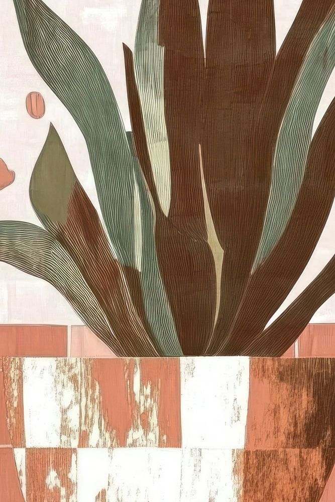 Plante d'agave dans le style boho ibiza avec les reflets d'une piscine. Cette œuvre d'art vous placera instantanément dans les sphères méditerranéennes.