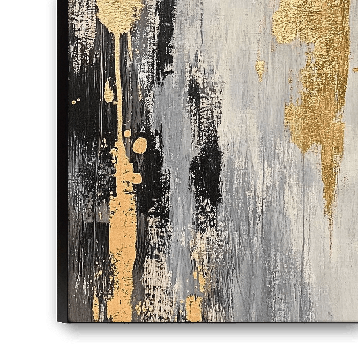 Ce dessin représente un gros plan fascinant d'un œil, subtilement entrelacé avec des éléments abstraits et des touches d'or. L'utilisation spectaculaire du noir, du blanc et du gris crée un contraste monochrome, rehaussé par les éclaboussures de peinture dorée. L'œil, peint de manière réaliste et détaillée, attire immédiatement l'attention et évoque un sentiment de mystère et de profondeur. Les touches d'or confèrent à l'œuvre un aspect moderne et luxueux, qui la rend à la fois élégante et dynamique. Cette œuvre d'art s'intègre parfaitement dans un intérieur contemporain, tel qu'un bureau ou une chambre à coucher, et attire le regard de manière impressionnante. Il combine à la fois sophistication et abstraction, ce qui en fait un choix unique et élégant pour les amateurs d'art.
