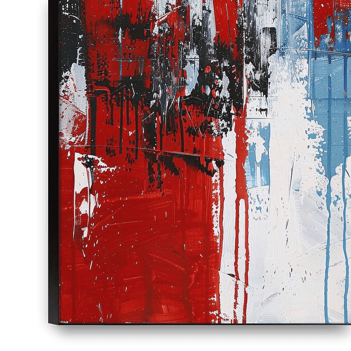 Cette peinture abstraite de paysage urbain apporte une atmosphère dynamique et moderne à n'importe quelle pièce. Les coups de pinceau audacieux et les couleurs vibrantes de rouge, blanc, noir, bleu et gris créent une composition énergique qui est à la fois intrigante et visuellement stupéfiante. Parfait pour les amateurs d'art moderne,…