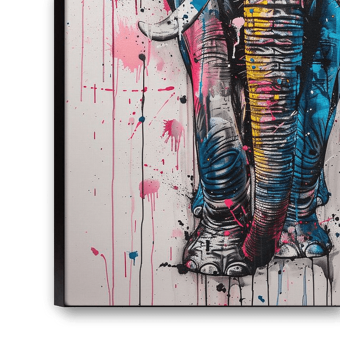 Cette peinture saisissante d'un éléphant est une véritable œuvre d'art qui donnera vie à n'importe quel espace. Il associe la puissance de l'animal majestueux à une explosion de couleurs et à des éclaboussures de peinture dynamiques. Parfait pour les amateurs d'art moderne, ce tableau ajoute une atmosphère ludique et énergique à votre intérieur. Qu'il soit placé dans une chambre, un bureau ou tout autre espace, il ne manquera pas de faire parler de lui. Le mélange de teintes roses, bleues et jaunes vibrantes, ainsi que les éléments abstraits, en font une pièce unique qui respire à la fois la tranquillité et l'énergie. Ajoutez une touche de style éclectique à votre intérieur avec ce magnifique tableau d'éléphant.