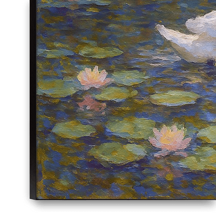 Achetez cette œuvre d'art florale Peinture de cygnes dans un étang avec des nénuphars. par Johannes sur toile, aluminium, ArtFrame ou photographie (encadrée), impression d'art en haute qualité et tout format.