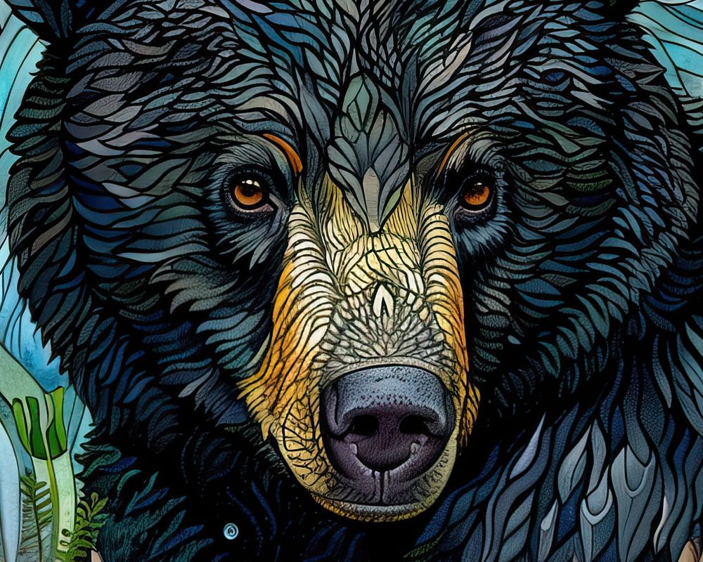 Détails : ours, fleurs, nature, vert, brun, orange, blanc, noir, feuilles, flore