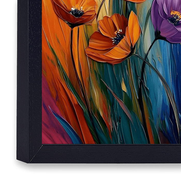 Ce tableau de fleurs colorées est disponible sur toile de haute qualité, verre acrylique ou papier poster de luxe, afin que vous puissiez choisir la finition qui convient le mieux à votre style.