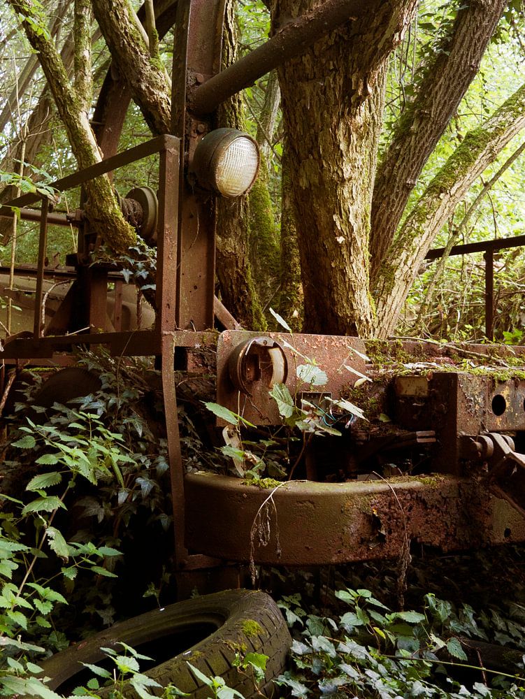 Cette voiture est complètement reprise par la nature. La voiture a été abandonnée dans la forêt pendant des années et des années.