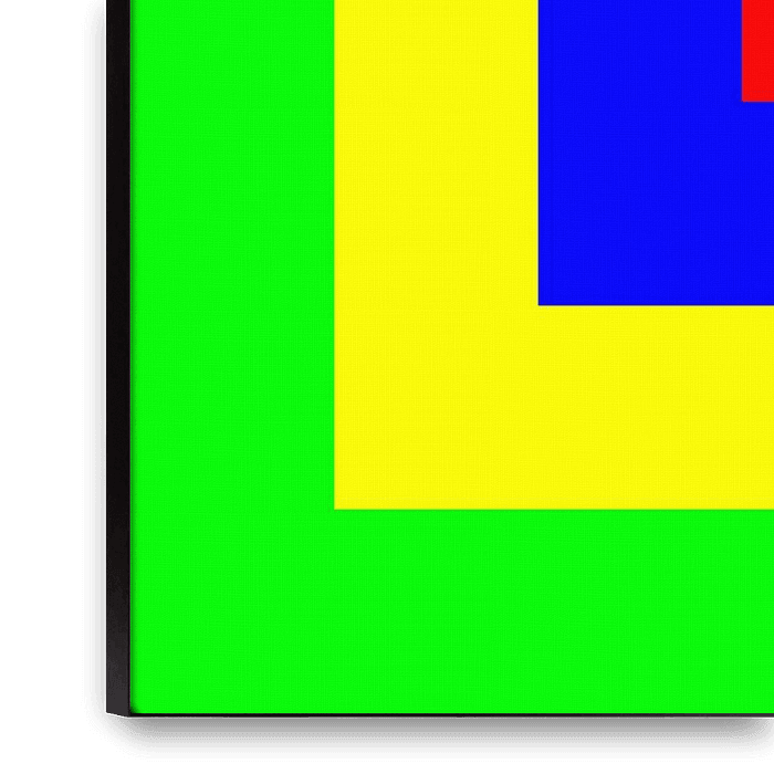 Quatre carrés, ou bandes de couleur, emboîtés les uns dans les autres. Chaque bande de couleur peut prendre l'une des quatre couleurs. Au centre, il y a 6 variations de couleurs pour chaque couleur. Au total, il y a donc 4*6 = 24 possibilités d'arrangement.