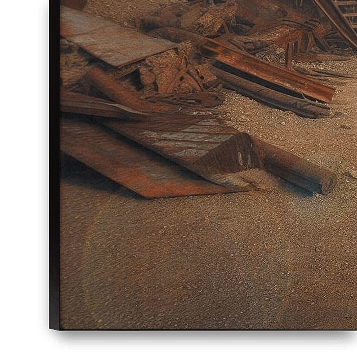 Cette impressionnante illustration steampunk montre un guerrier nomade steampunk traversant un paysage post-apocalyptique désert. Le personnage dégage une aura intrigante qui respire à la fois la puissance et l'élégance. L'environnement est composé de machines rouillées, de tours industrielles effondrées et de couches d'air…