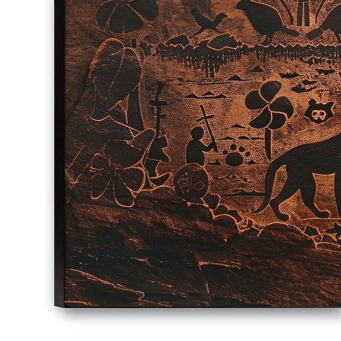 Ce dessin artistique illustre un voyage intemporel au cours duquel les hommes et les animaux traversent ensemble la nature. L'utilisation de tons sépia lui confère un charme antique, donnant l'impression qu'il a été pris directement sur le mur d'une ancienne grotte. Parfait pour ceux qui souhaitent enrichir leur intérieur d'un morceau d'histoire et de nature. Les couleurs calmes et terreuses se marient bien avec les intérieurs modernes ou classiques, ce qui fait de cette pièce un choix polyvalent pour les salons et les bureaux.