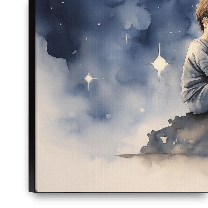 À propos de ‘Petit garçon avec un ballon rouge sous les étoiles’ par Lauri Creates