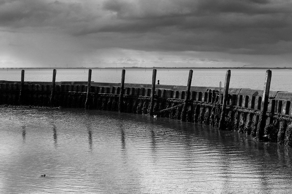 Petit port pittoresque de l'Escaut oriental près de Kerkwerve en Zélande. La jetée incurvée pour la protection des navires est quelque chose que l'on ne voit pas beaucoup aux Pays-Bas.