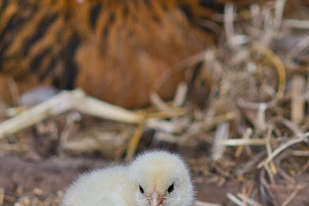 Comme ils sont mignons, les petits poussins des gros poulets Brahma.