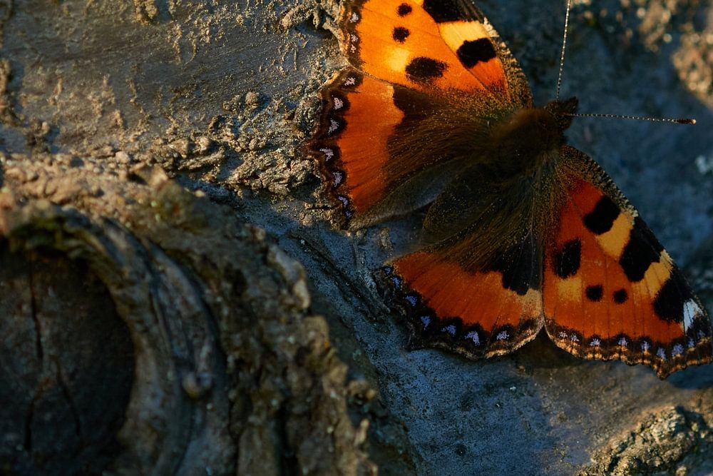 Petit renard (Aglais urticae) au soleil couchant