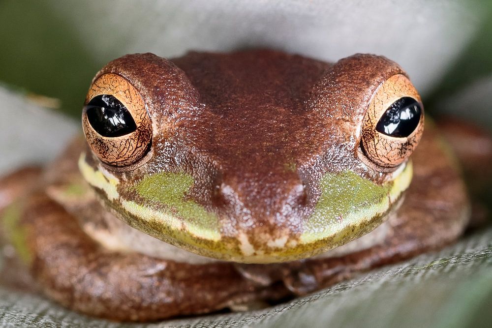 Cette petite rainette brune se détendait entre les feuilles d'un ananas.