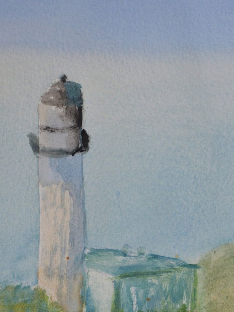 La vue que l'on a lorsqu'on atteint la première colline de la péninsule est impressionnante. Cela m'avait déjà fasciné lors de mes premières vacances à Rhodes au début des années 1990. Au début de cette année, cette aquarelle a été réalisée à partir d'une photo de vacances prise en 2018. On voit qu'il fait très chaud à la vue brumeuse.