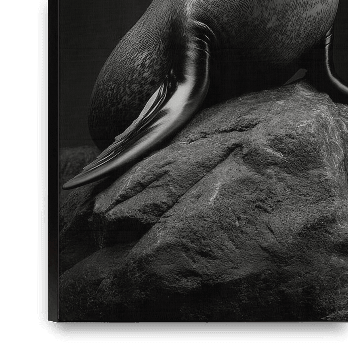 Dans un noir et blanc puissant, le noble phoque resplendit majestueusement sur un rocher lisse. Ses yeux curieux et son doux sourire rayonnent de calme et d'espièglerie. Ce motif animalier affectueux apporte une note maritime dans chaque salon et favorise une atmosphère détendue et harmonieuse. Idéal pour les amoureux de la nature et…