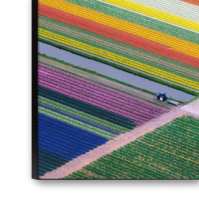 Photo aérienne des champs de tulipes colorés près de Lisse, Pays-Bas