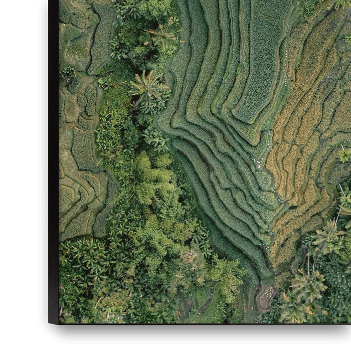 Achetez cette photo Photo de haut en bas prise par un drone des rizières de Tegallalang à Bali par Thea.Photo sur toile, aluminium, ArtFrame ou photographie (encadrée), impression d'art en haute qualité et tout format.