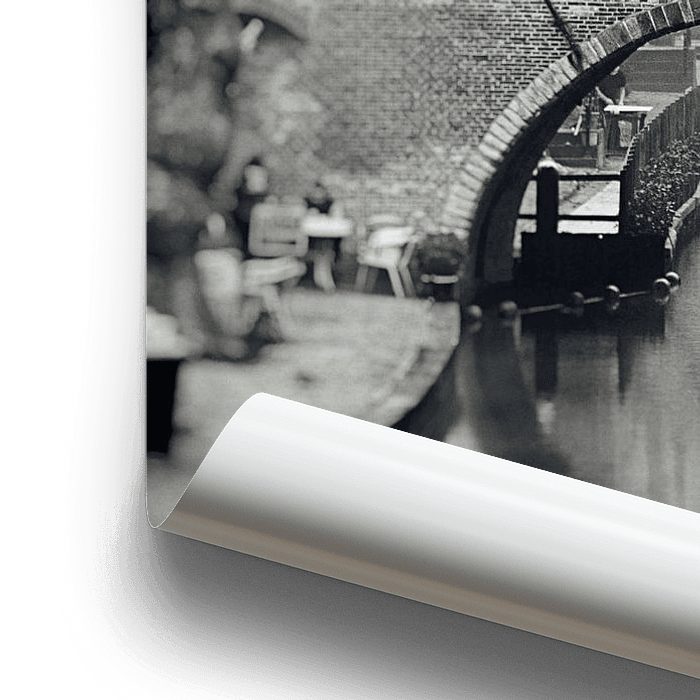 Le Weesbrug sur l'Oudegracht à Utrecht en noir et blanc (2). Cette photographie monochrome fait partie d'une vaste collection de statues du centre-ville d'Utrecht réalisées par André Blom Fotografie. Le nom du projet : "De Utrechtse Grachten".