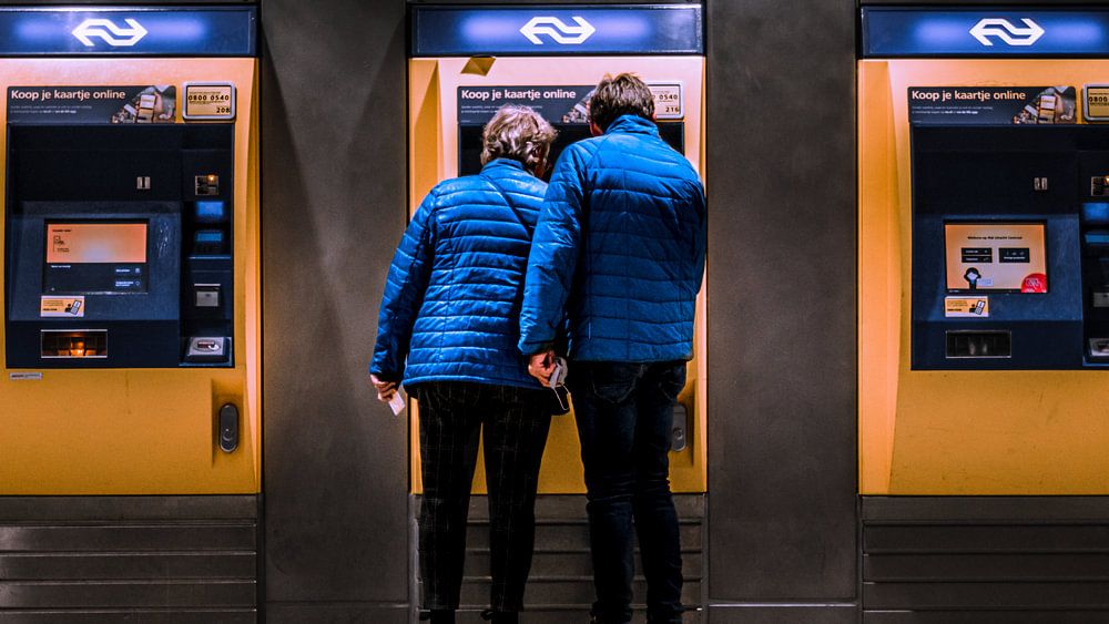 J'ai pris cette photo à la gare centrale d'Utrecht. J'ai attendu environ une demi-heure pour une telle photo. Je pense que cette photo est typique de la photographie de rue, rien n'est mis intentionnellement dans cette photo, les personnes âgées qui achètent un ticket sont réellement en train d'acheter un ticket. Dans cette photo, j'essaie de mettre les couleurs jaune et bleu en opposition. Les deux vestes bleues contrastent fortement avec le distributeur de billets jaune. J'ai exposé cette photo dans les endroits les plus lumineux de la scène. Cela vous donne une photo un peu sombre où seuls les éléments les plus importants sont visibles.