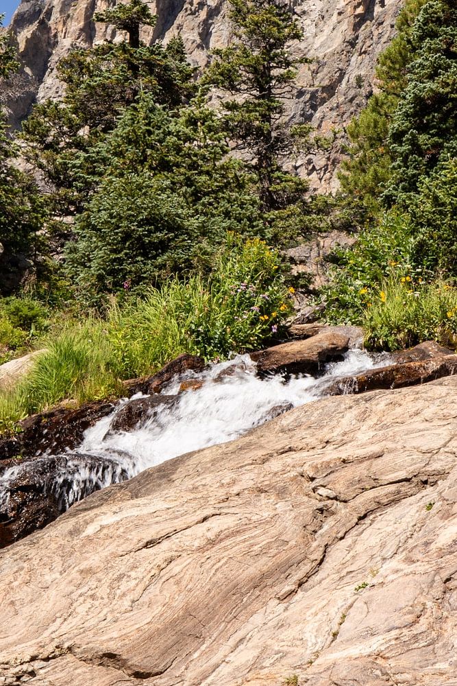 Le Bear Lake Trail, dans le parc national de Rocky Mountain, est une belle randonnée qui vous emmène vers plusieurs lacs. Certaines plus belles que d'autres. Mais ce ne sont pas les seuls points forts de la randonnée. Les pics montagneux déchiquetés soulignent à quel point la nature est rude ici. L'effet indubitable des hivers rigoureux et des étés chauds, qui façonnent magnifiquement les roches. Le petit cours d'eau montre à quel point la région est fertile.