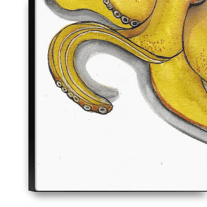 Cette aquarelle aliénante vous met sur la mauvaise voie. Est-ce une banane ? Une pieuvre jaune vif ? De l'art avec un clin d'œil.