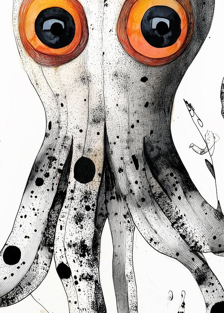 Pieuvre blanche drôle #octopus par JBJart Justyna Jaszke