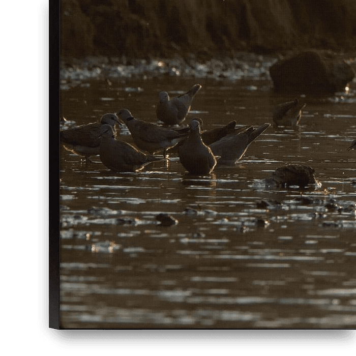 Pigeons au lever du soleil dans le parc national de Mana Pools au Zimbabwe.
