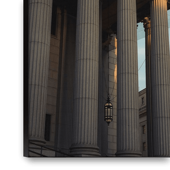 Achetez cette photo Piliers de la justice : architecture historique au coucher du soleil par NZME Photography sur toile, aluminium, ArtFrame ou photographie (encadrée), impression d'art en haute qualité et tout format.