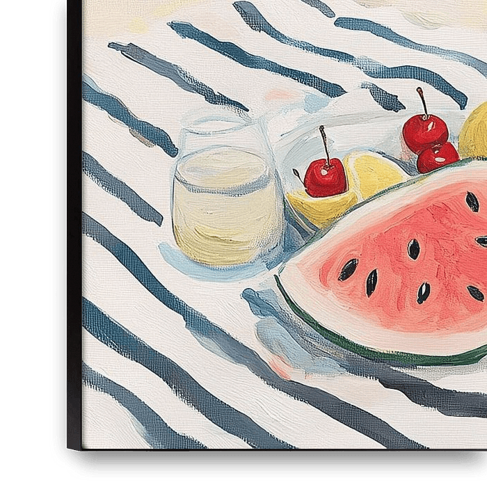 Acheter ce tableau Pique-nique Plage Pastel Peinture de fruits Été par Niklas Maximilian sur toile, aluminium, ArtFrame ou photographie (encadrée), impression d'art en haute qualité et tout format.
