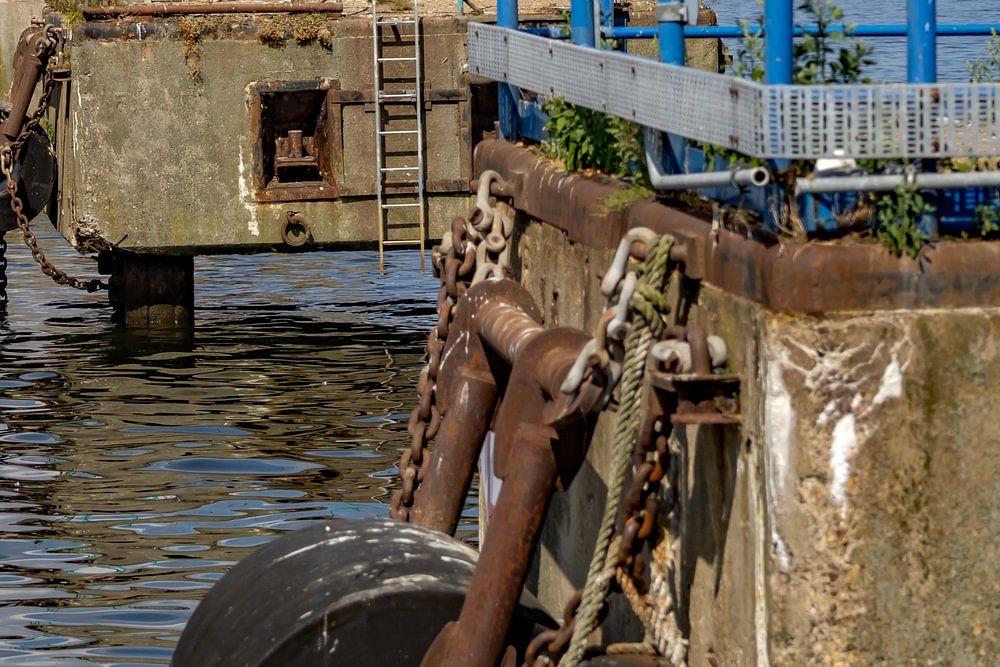 Dans la zone portuaire de la ville hanséatique de Wismar, les places de dalles 16 et 18 sont d'anciennes places d'amarrage pour bateaux. Ils se trouvent devant la pointe du vieux port et entre l'ancien port à bois et le terminal à tourbe.
