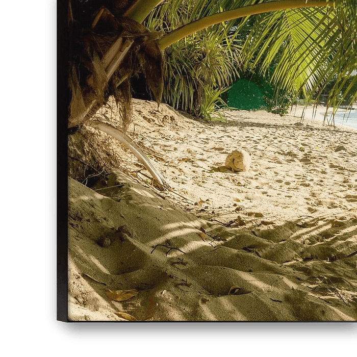 Une plage isolée sur l'île de la Barbade, dans les Caraïbes, avec de grands palmiers et une mer turquoise, sous un soleil radieux.